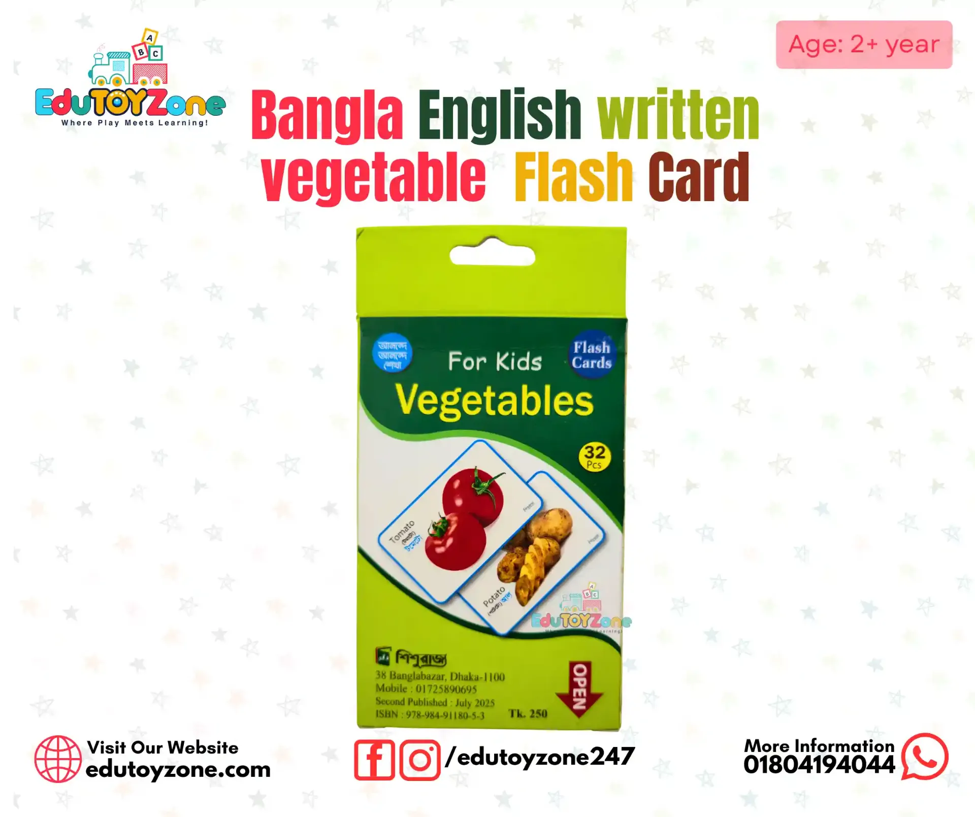 Size : 5.1 x 3.2 Inch. এই রঙিন ফ্ল্যাশ কার্ডগুলো শিশুদের জন্য ফল শেখার একটি দারুণ উপায়। প্রতিটি কার্ডে ফলের ইংরেজি ও বাংলা নাম এবং সুন্দর ছবি রয়েছে। এটি বাচ্চাদের শব্দভান্ডার বাড়াতে এবং বিভিন্ন ফলের সাথে পরিচিত হতে সাহায্য করবে।