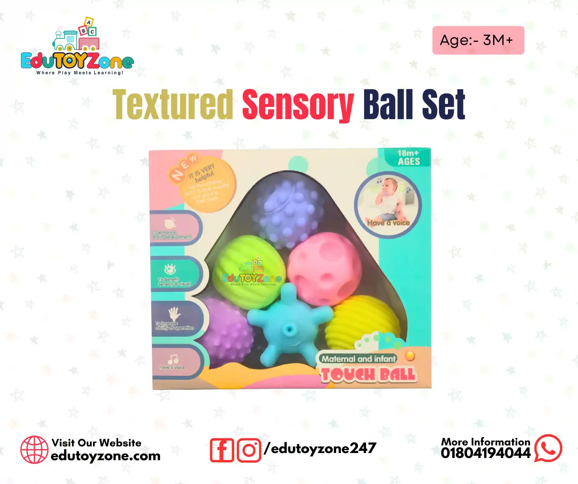 Keep your little one happy and engaged with this colorful baby rattle and teether ball set. Designed with safe, baby-friendly materials, these balls are easy to hold, shake, and chew. The rattling sound stimulates hearing, while the soft design soothes teething discomfort.