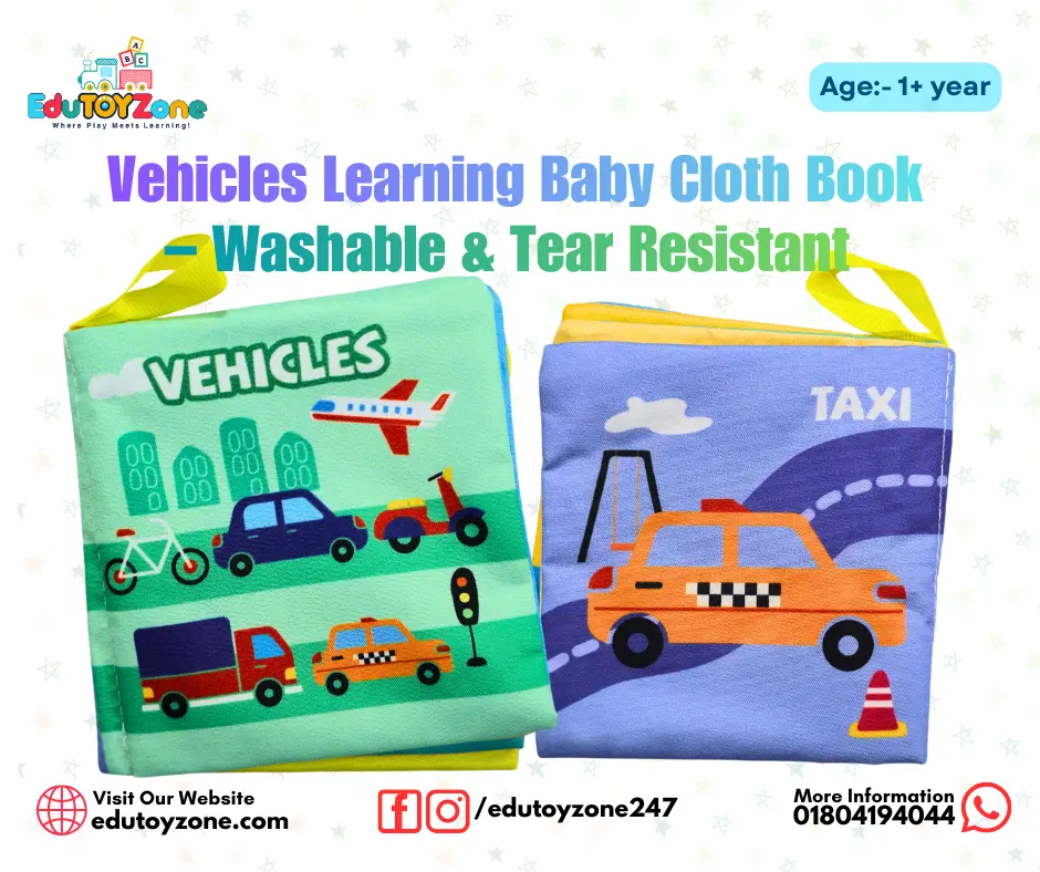 Vehicles Learning Baby Cloth Book – Washable & Tear Resistant
