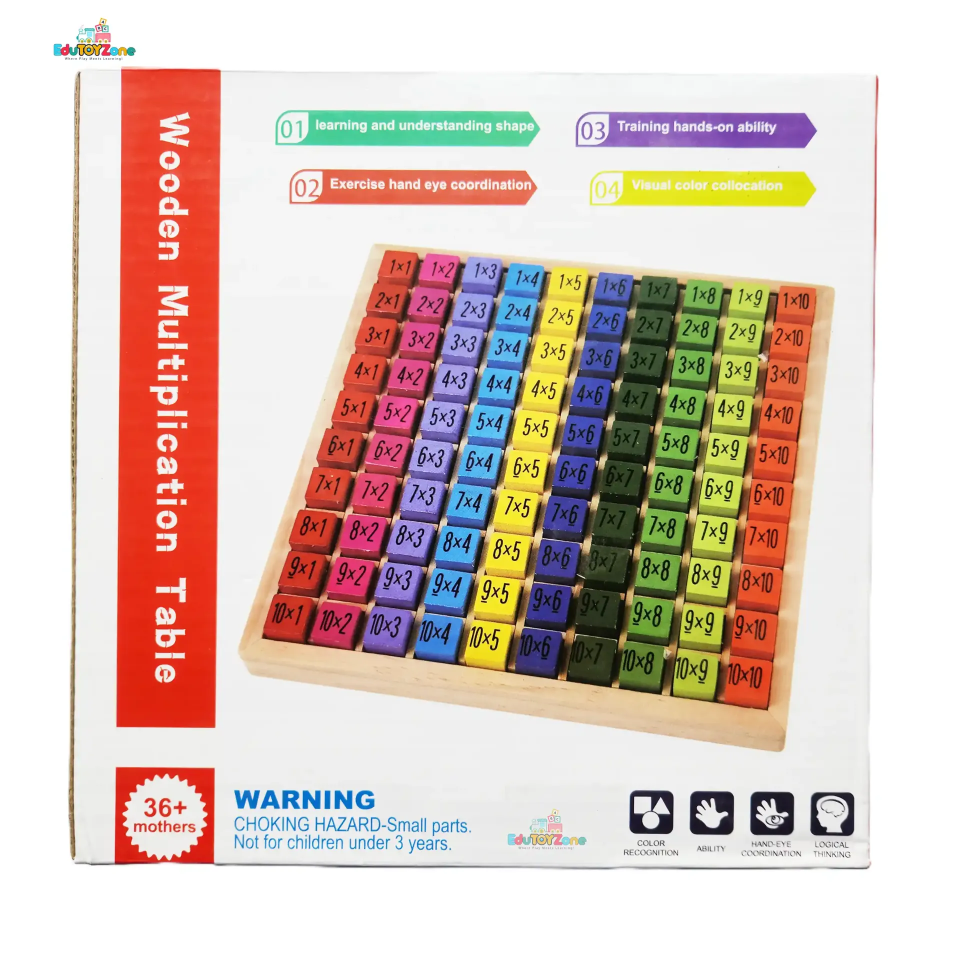 A fun and interactive wooden toy that helps children learn numbers, shapes, colors, and more â all in one set!